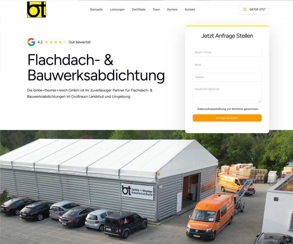 Obwohl sein Betrieb gut lief, lies Florian von der Birkle + Thomer + Resch GmbH seinen gesamten Online-Auftritt überarbeiten. Das führte zu spürbar besseren Projektanfragen und Bewerbungen von Fachkräften und Azubis.